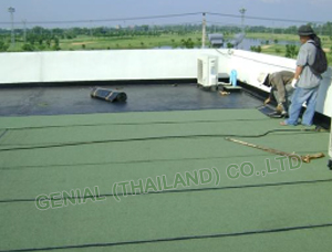 ด้วยวิธี Coating (ทา5ชั้น+แผ่นเสริมแรง) , ปูแผ่นเป่าไฟ