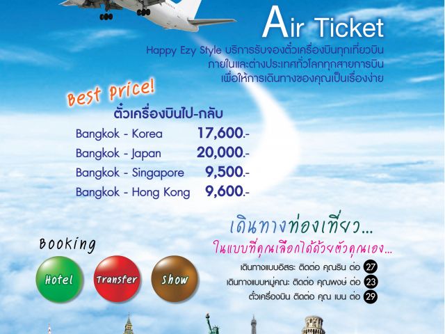 ไม่ว่าจะเดินตรงไหนของโลก ติดต่อจองตั๋วเครื่องบินกับเราได้ที่ 02-5395770 ต่อ 28-29 หรือ www.happytokorea.com