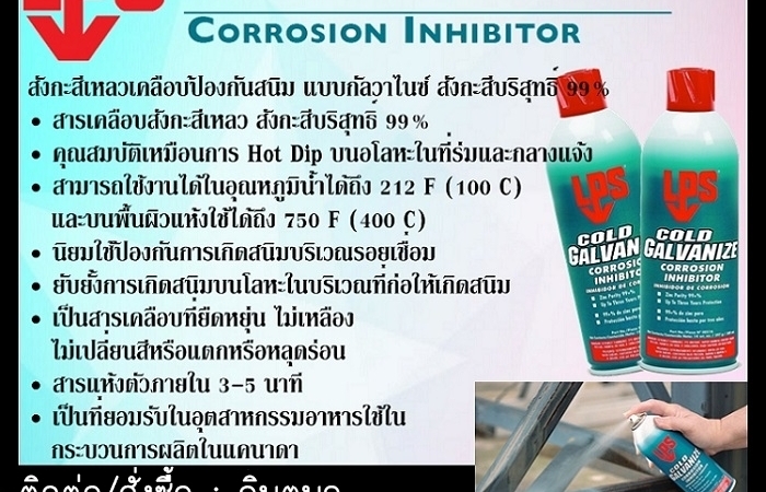 สเปรย์กาล์วาไนซ์ บริสุทธ์ 99 % [Zinc Rich] ใช้เคลือบผิวโลหะทุกชนิดเพื่อป้องกันสนิม หรือสนิมบริเวณที่ทำการเชื่อม ป้องกันสนิมนาน เกิน 3 ปี ทนความร้อนได้ถึง 100C แห้งเร็ว (ป้องกันสนิมด้วยวิธีถ่ายประจุไฟฟ้า )สามารถใช้เป็นรองพื้น ก่อนทาสีได้ สามารถป้องกันไอกรด ไอเค็ม ได้