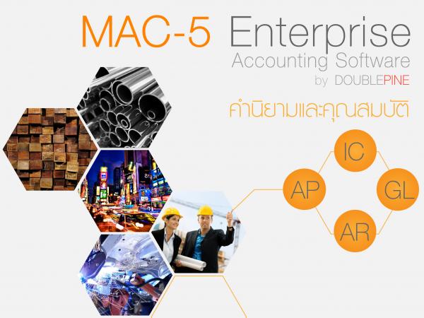 โปรแกรมบัญชี MAC-5 เพื่อการวิเคราะห์เจาะลึกต้นทุนสำหรับผู้บริหาร ช่วยควบคุมต้นทุนและค่าใช้จ่ายในองค์กร ระบบงานรองรับหลายประเภทธุรกิจและมีความสามารถรอบด้าน ทั้งการวิเคราะห์ที่สามารถแสดงผลได้หลากหลายรูปแบบอย่างชัดเจนและแม่นยำ การเชื่อมโยงข้อมูลระหว่างระบบบัญชี การพิมพ์รายงานและเอกสารยื่นภาษี เป็นต้น