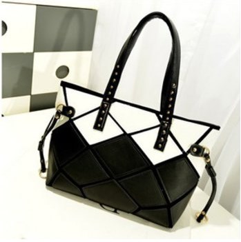 กระเป๋าแฟชั่นเกาหลี กระเป๋าแฟชั่นกระเป๋าสวยๆ สีขาวแกมดำ ทำจากหนัง PU คุณภาพดี ขนาดกระเป๋า:11*30*39cm