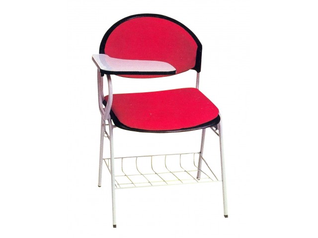 "เก้าอี้เลคเชอร์ บุ PVC หรือ ผ้า โครงขาเหล็ก พ่นสีเทา ด้านล่าง มีตะแกรงใส่หนังสือ