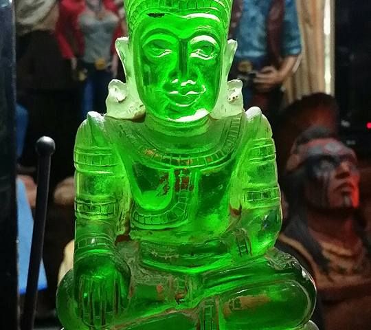 พระแก้วมณีโชติ หยก มรกต (สีเขียว) มีคราบกรุและปิดทองคำติดมาแน่น เป็นพระที่ทรงคุณค่าและมีพลานุภาพแบบประมาณมิได้ อีกทั้งตำนานที่มาก็คล้ายกันกับพญาเหล็กไหล และอยู่ในตระกูลมณีโชติเช่นเดียวกัน เทวดาผู้ดูแลจะมีพญานาคดูแลอยู่ด้วย เป็นหนึ่งในสิ่งของวิเศษสุดในยุคภัยพิบัตินี้ ว่ากันว่าป้องกันภัยพิบัติและภัยจากนิวเคลียร์ได้ดีนักแล มนุษย์ที่ได้ครอบครองพระแก้วมณีโชติจะปลอดภัยจากอันตรายทั้งหลาย ทั้งปวง มีความสุขสมบูรณ์ เจริญด้วยโภคทรัพย์ เทวดาปกปักษ์คุ้มครองรักษา ขนาดหน้าตัก 4 นิ้ว ความสูง 8 นิ้วราคา 12,000 บาท ลักษณะ-สีตามรูปภาพ สนใจติดต่อ อ. ธนยศ หมู่บ้านบุญฑริก 48/31 ถ .ไสวประชาราษฎร์ ต.ลาดสวาย อ.ลำลูกกา คลองสี่ ปทุมธานี โทรศัพท์ 02-592-3531,092-246-6926,082,962-4942