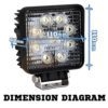 ●ขนาด 11.2 CM ทรงเหลี่ยม กำลังไฟ 27 Watt ( LED 9 ดวง x 3Watt) ไฟ 12V-24V เเสงสีเเดง