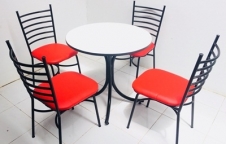 Set-นางาซากิ เก้าอี้ เหลี่ยมพนักพิง 6 เส้น /โครงดำ 4ตัว+โต๊ะ1ตัว ราคา 1,990 บาท