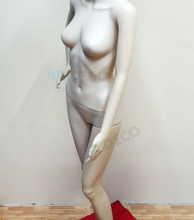 หุ่นโชว์เต็มตัว PE พร้อมฐานกระจก (ไม่มีวิกผม) สีเนื้อแข็งแรงทนทานพร้อมฐานกระจก สามารถถอดประกอบได้ทั้งตัว น้ำหนักเบาประมาณ 10 กก. ความสูงโดยประมาณ 175 ซม. ใช้สำหรับโชว์ชุดเสื้อผ้าผู้หญิง เน้นรูปทรง